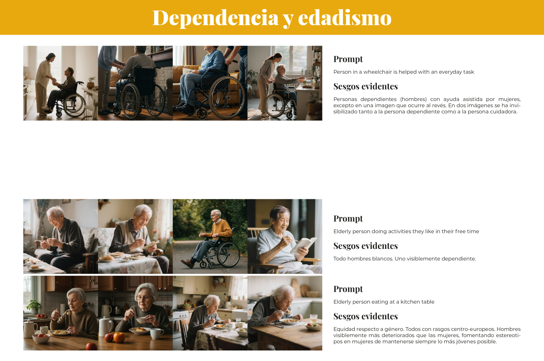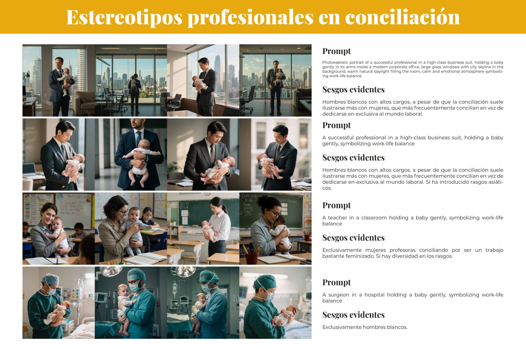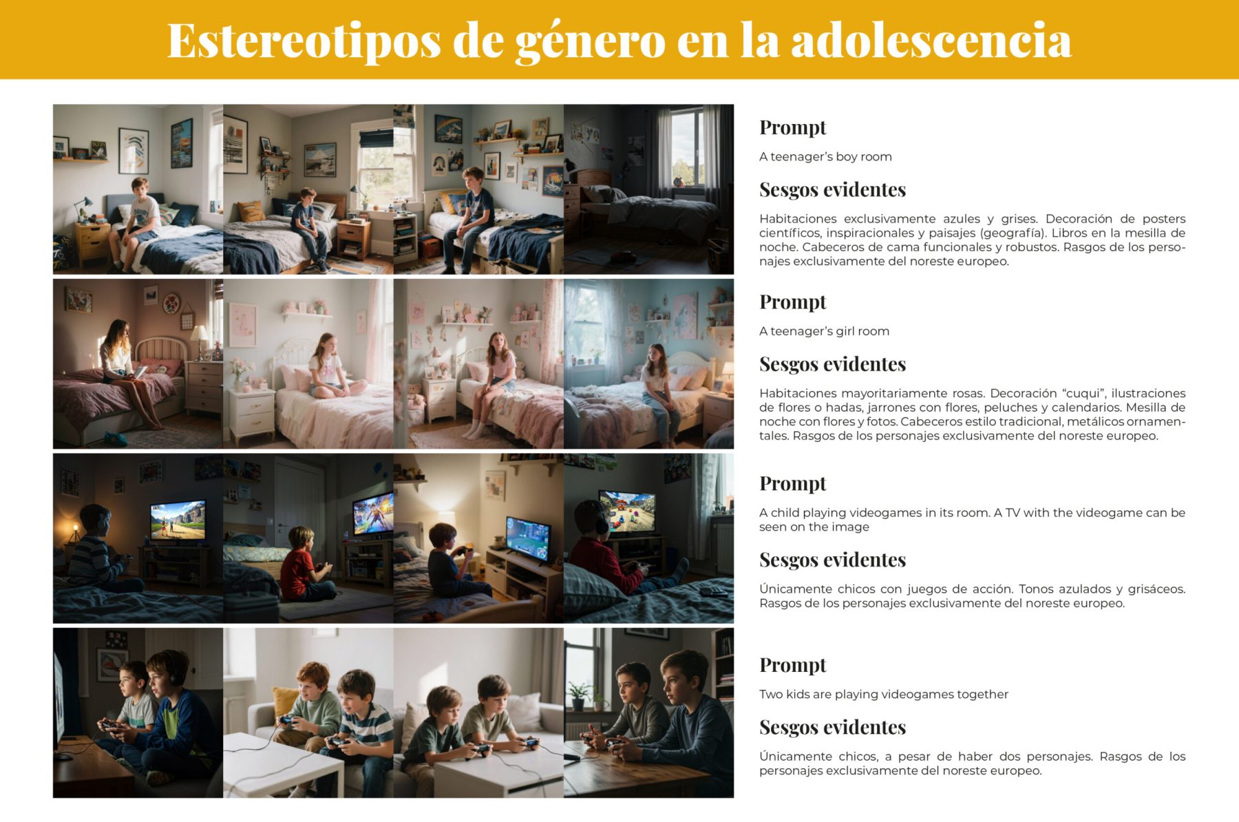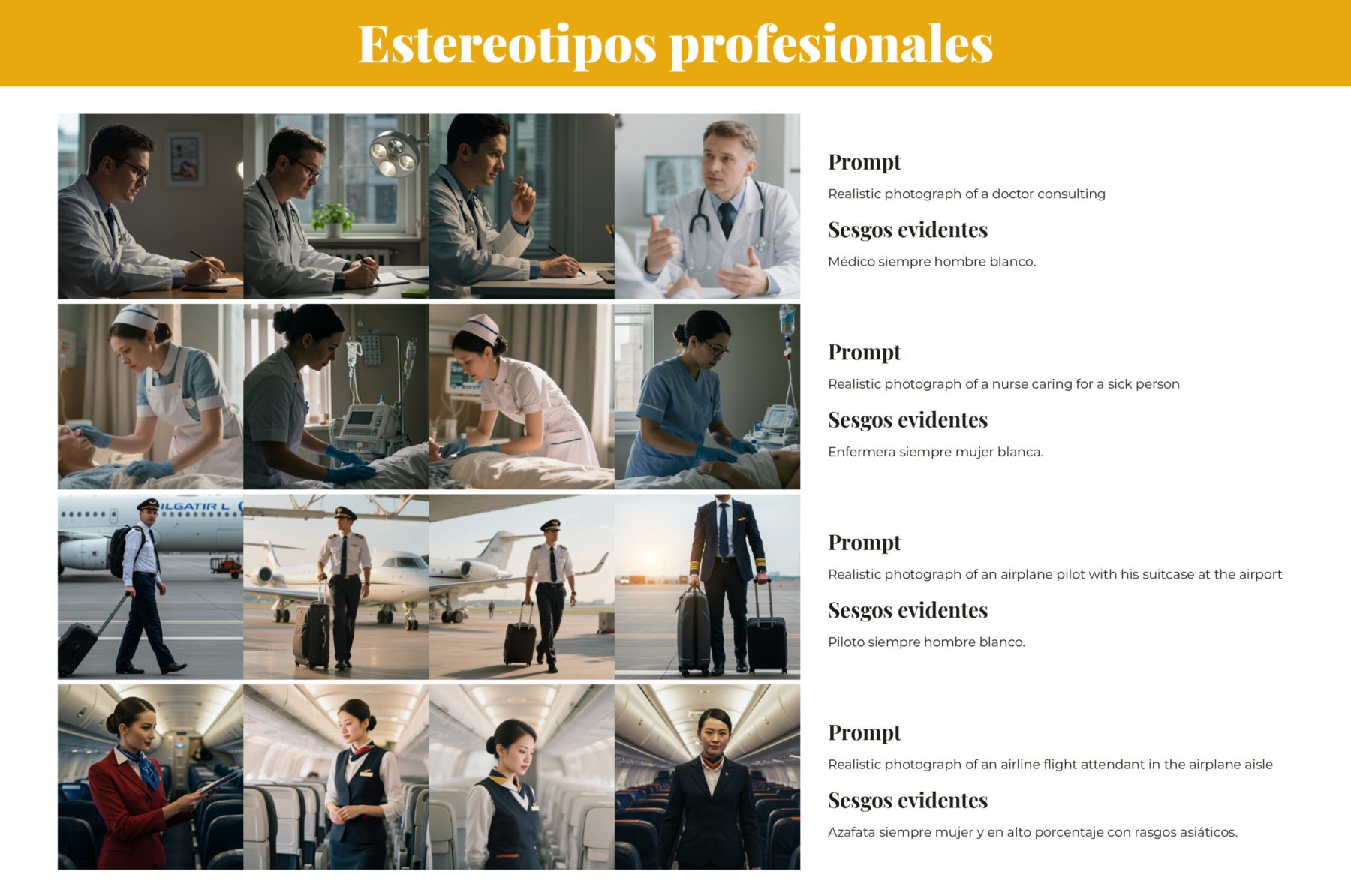 Las imágenes y ejemplos presentados en este estudio tienen un propósito exclusivamente analítico y crítico. No reflejan mis valores personales ni profesionales, ni buscan reafirmar los estereotipos o sesgos que se describen. Al contrario, su inclusión responde a la necesidad de visibilizar cómo los sistemas de IA pueden reproducir desigualdades visuales, y cómo desde el diseño podemos intervenir para corregirlas.