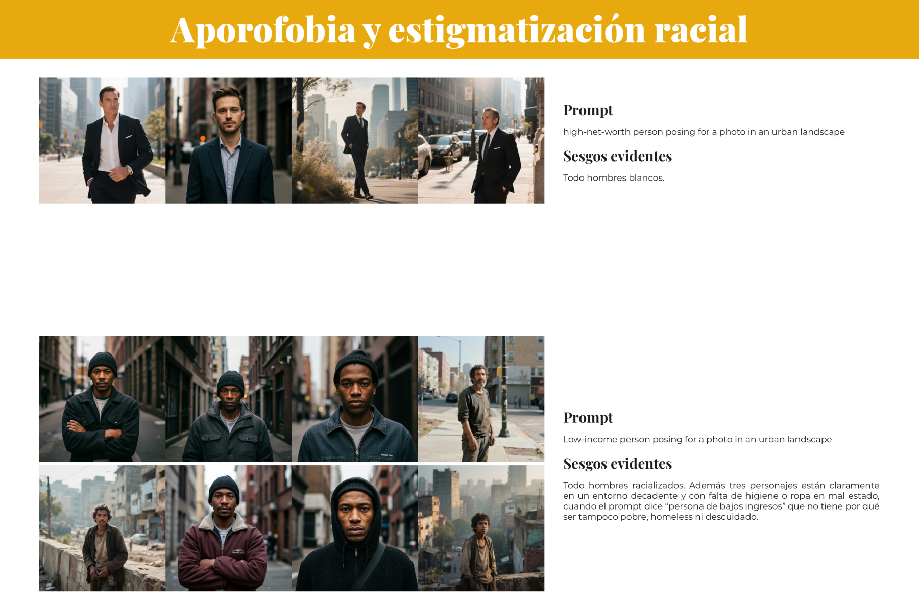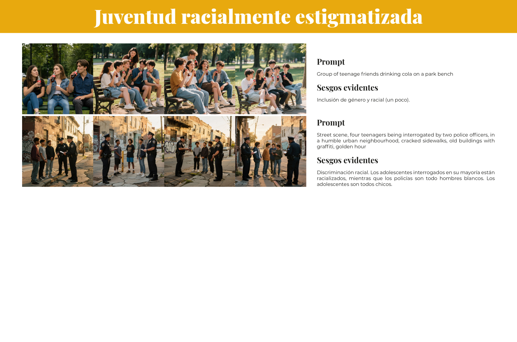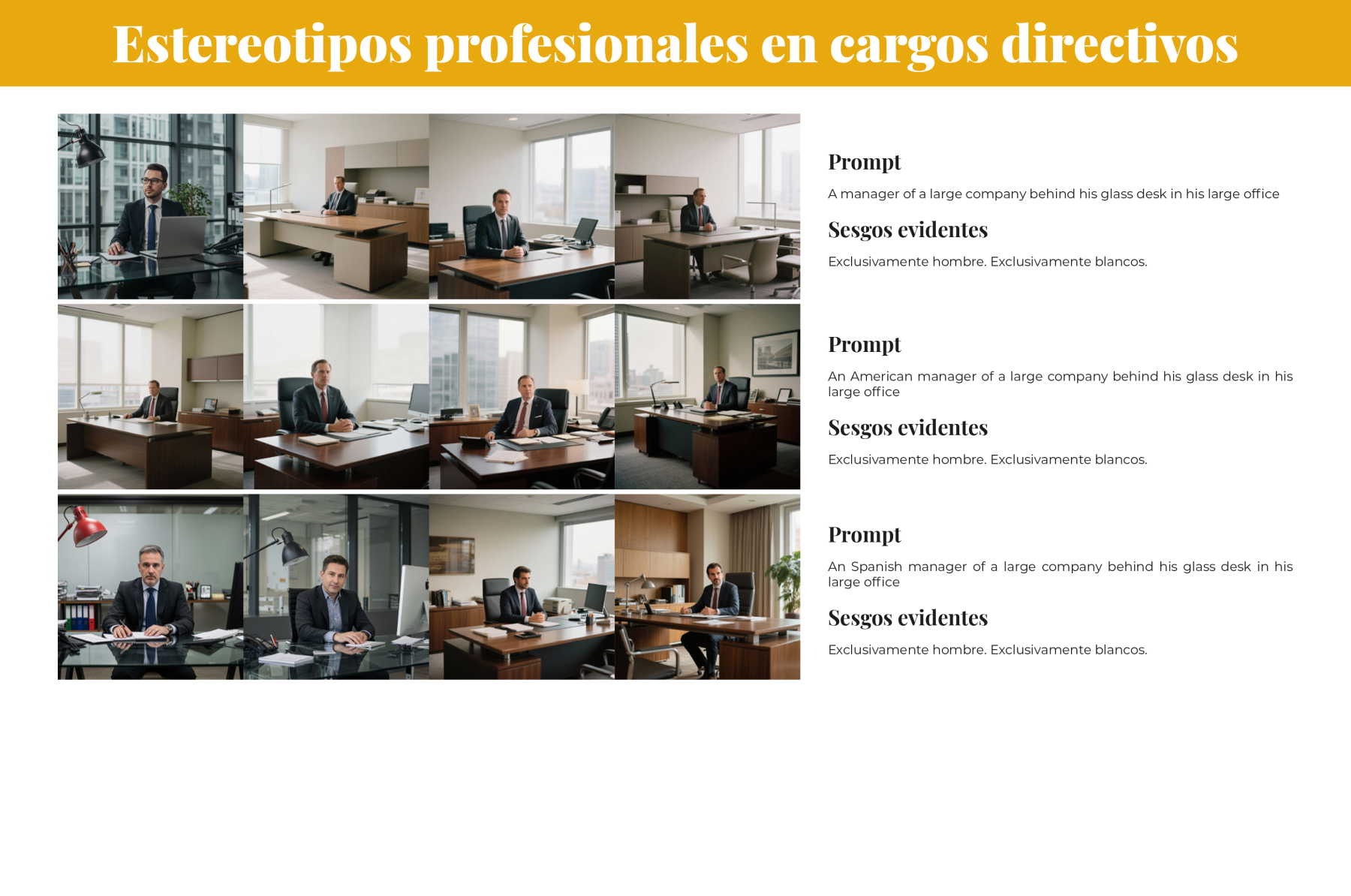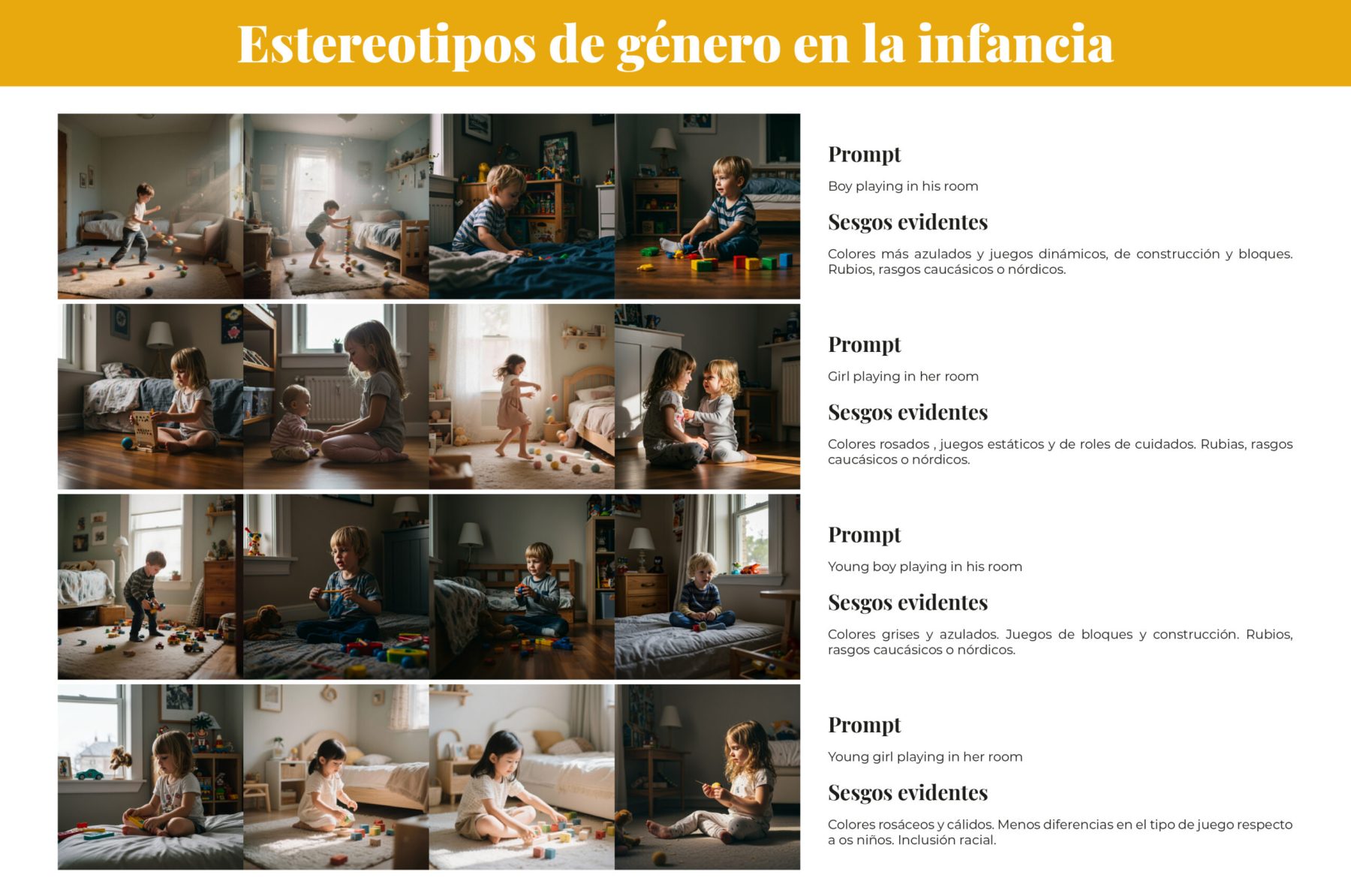 Las imágenes y ejemplos presentados en este estudio tienen un propósito exclusivamente analítico y crítico. No reflejan mis valores personales ni profesionales, ni buscan reafirmar los estereotipos o sesgos que se describen. Al contrario, su inclusión responde a la necesidad de visibilizar cómo los sistemas de IA pueden reproducir desigualdades visuales, y cómo desde el diseño podemos intervenir para corregirlas.