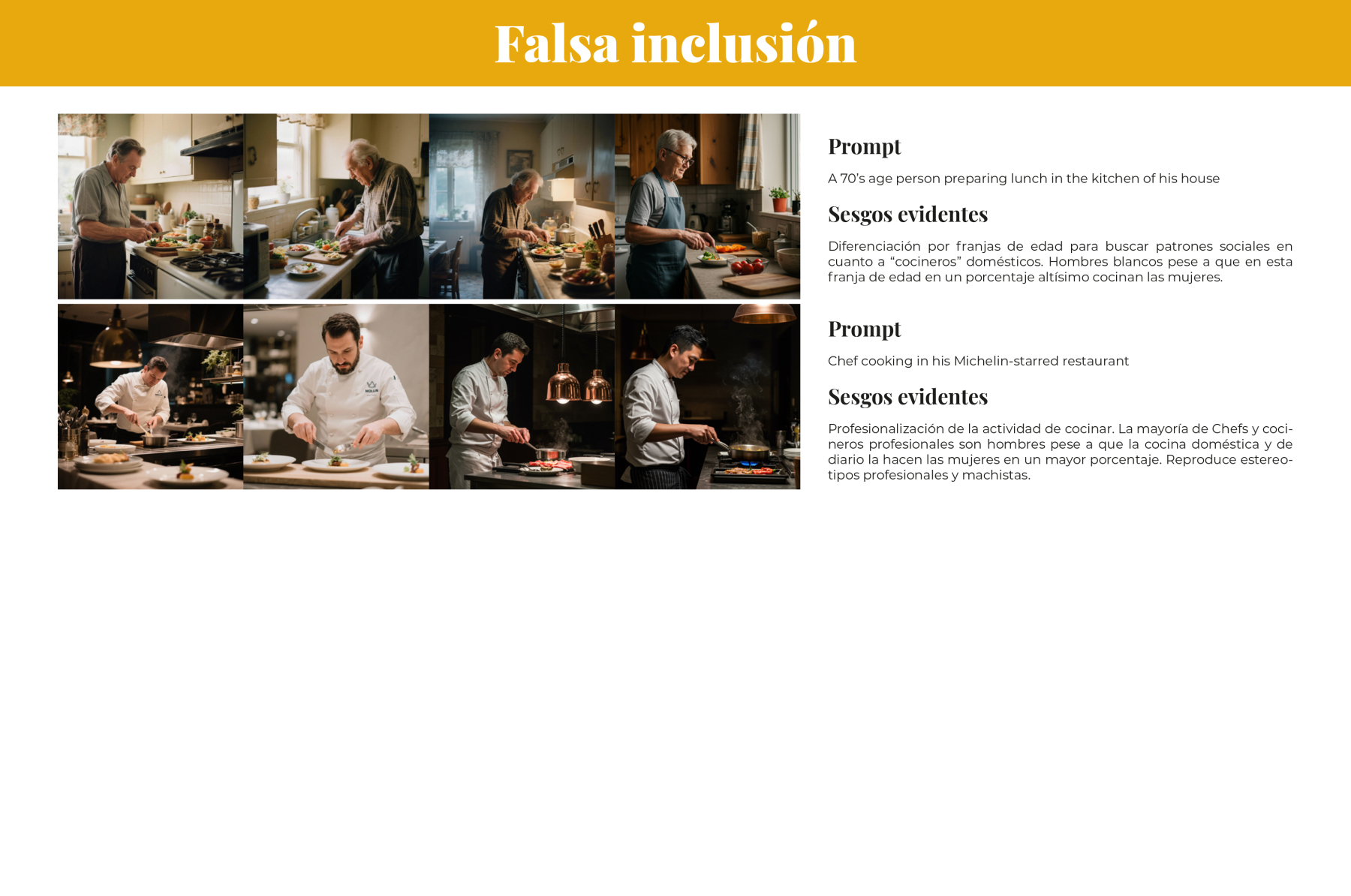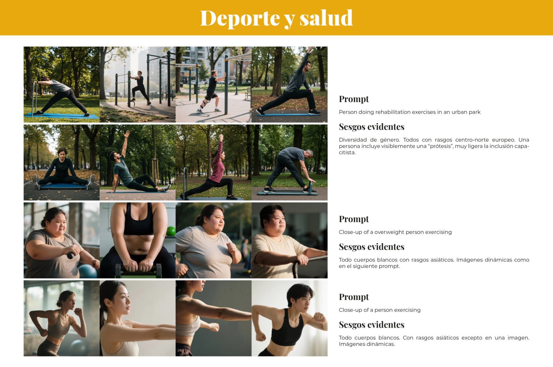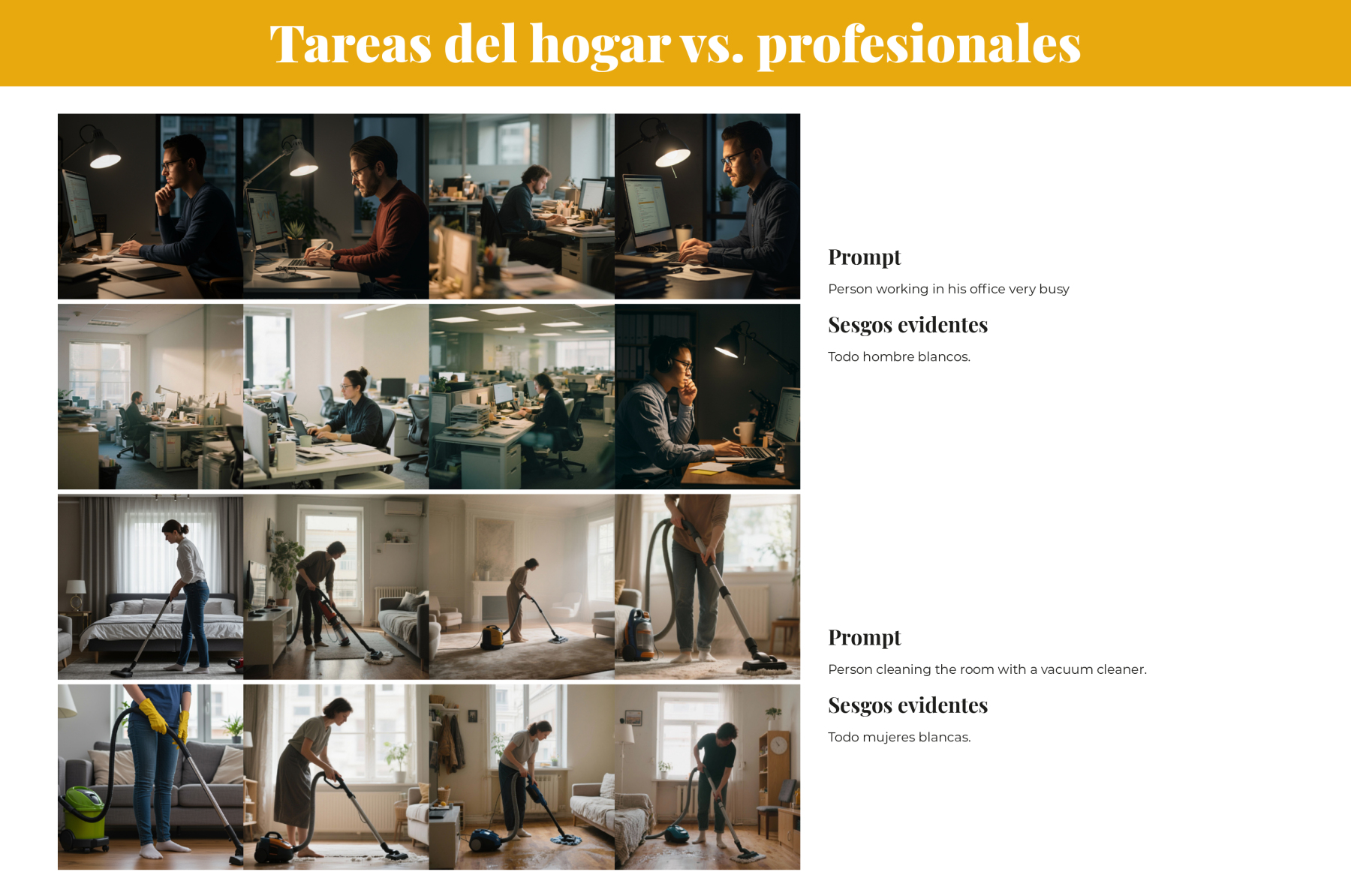 Los modelos tienden a reproducir estereotipos profesionales y de rol doméstico; invisibilizan cuerpos diversos y personas con discapacidad; y ofrecen poca transparencia sobre el origen de sus resultados.